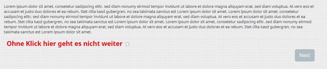 In meinem Willkommenstext geht der Hinweis auf die Datenschutzeinwillung etwas unter, ich würde gern die Schrift vergrößern, vlt. sogar gelb hinterlegen. Nicht, dass die Teilnehmer das Kästchen zum Einwilligen übersehen und sich wundern warum es nicht weiter geht.