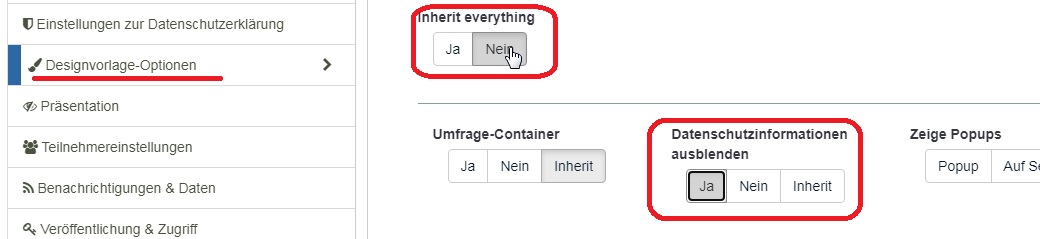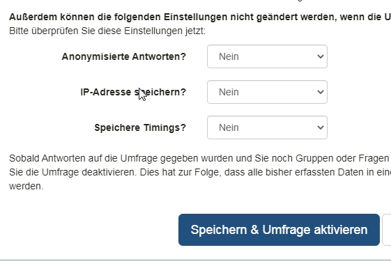 In diesem Falle kann ich Dein Problem nur nachvollziehen, wenn ich die Studie bei der Aktivierung als "anonym" anlege - was wie gesagt nicht notwendig ist - und auch in den Designvorlageoptionen die "Datenschutzinformationen" nicht ausblende.