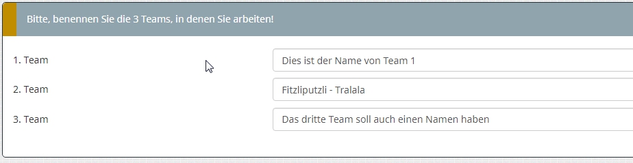 In der nächsten Frage möchtest Du nun die Namen dieser Teams eingeben lassen.