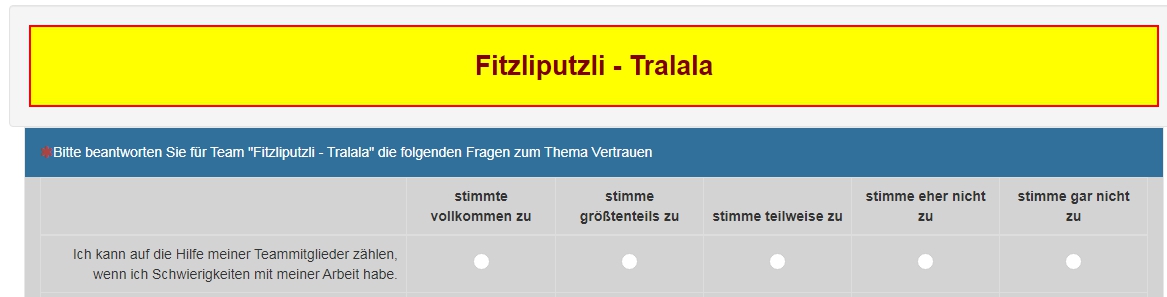 Dadurch sind die Antworten zu den Teams ebenfalls über alle Gruppen verstreut.