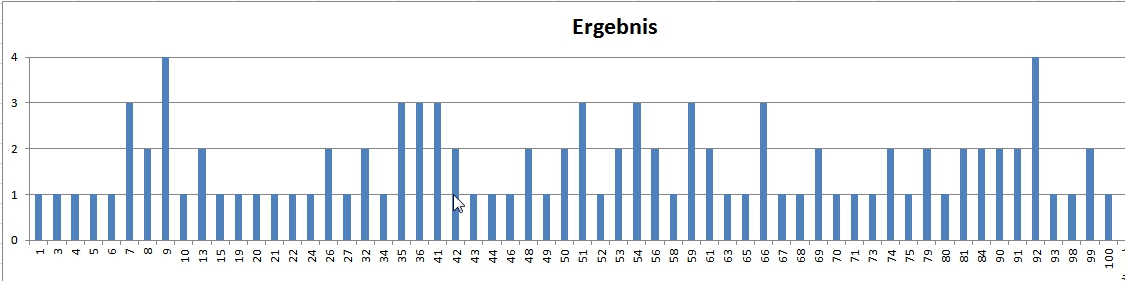 Probiere es doch aus.wie hoch wäre die Menge an doppelten Zahlen (1-100) bei einem random seed