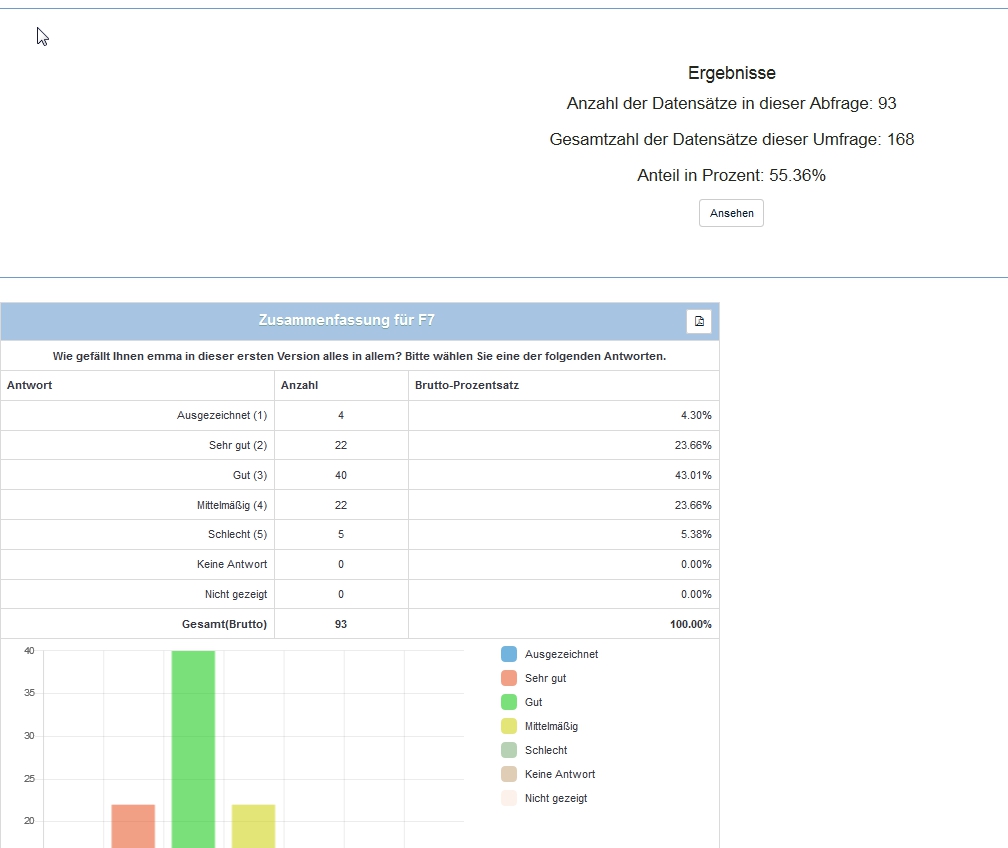 Insbesondere, da wir diese sogenannte "Statistik" niemals für Auswertungen empfehlen würden. Für einen schnellen Überblick während der Umfrage - okay, aber nicht mehr.