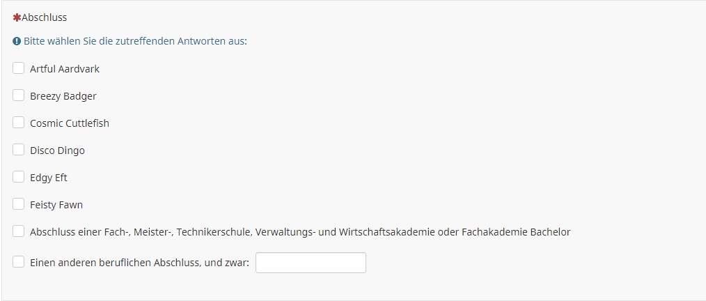 Dadurch hast Du die Option, auch einmal mehrere Fragen auf einer Seite darzustellen, oder - wie in diesem Fall ein javascript zu nutzen, welches dies voraussetzt.