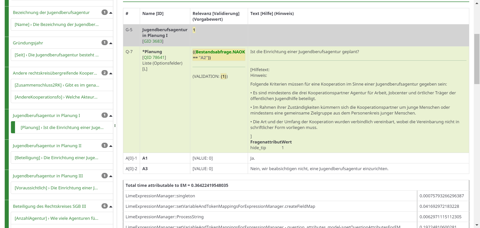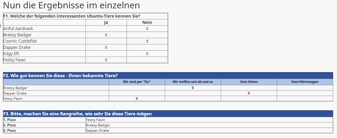 Allerdings eigentlich ausschließlich mit dem Report, der mich allerdings inzwischen auch schon seit einiger Zeit auf Trab hält. Wir sind halt Neulinge, was die Arbeit mit Limesurvey und auch das "Programmieren" an sich angeht, deshalb stellt das ganze eine ziemliche Herausforderung dar.
