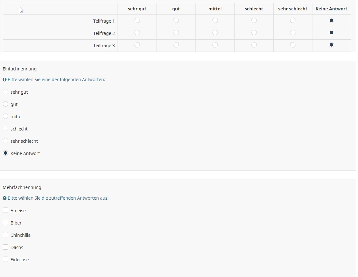 Und in anderen Scenarien müssen Fragen auf verschiedenen Bildschirmseiten gestellt werden, meist wenn Expression manager im Spiel ist.