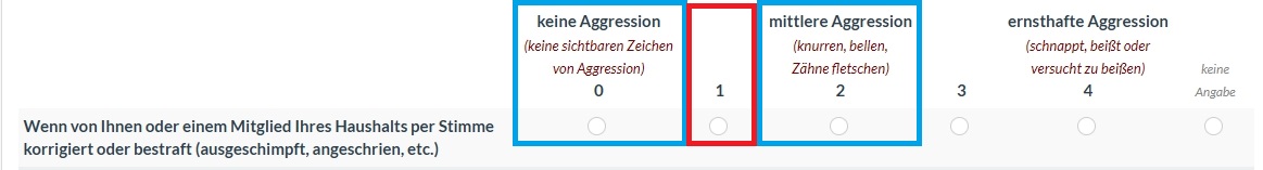 keine Aggression<br><span style="font-weight:normal;color:maroon;font-style:italic;font-size:10pt">(keine sichtbaren Zeichen<br>von Aggression)</span><br>0