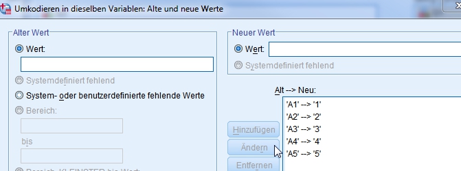 "Daten transformieren / Umkodieren in dieselben Variablen"