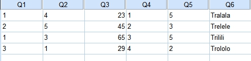 Q1,Q2,Q4,Q5 sind die umzukodierenden Textvariablen