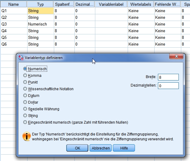Du musst die Variablen also noch auf "numerisch" ändern.