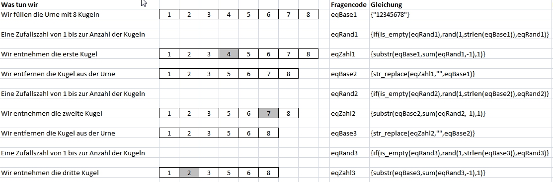2. Das "Ziehen ohne Zurücklegen" nachgestellt.