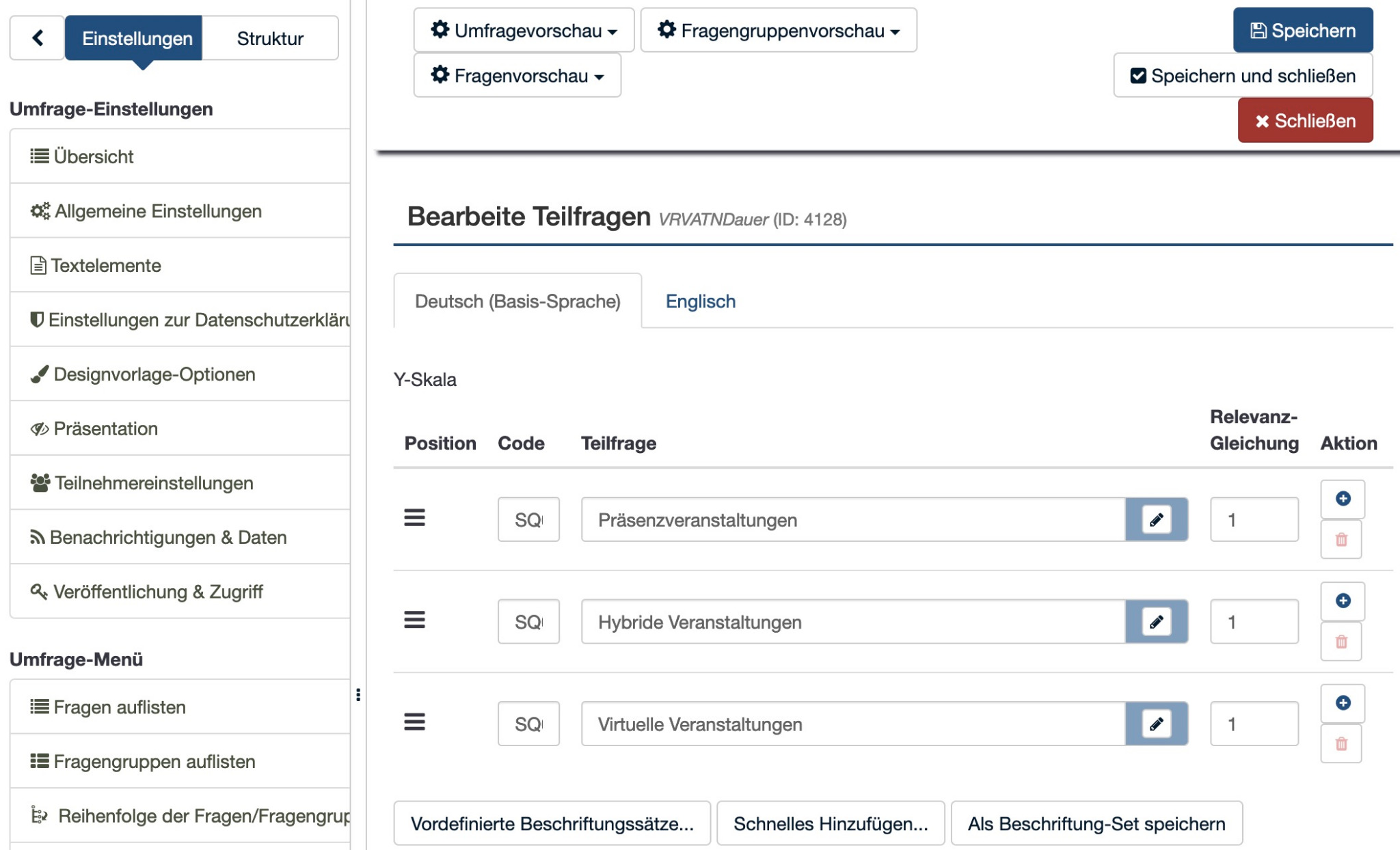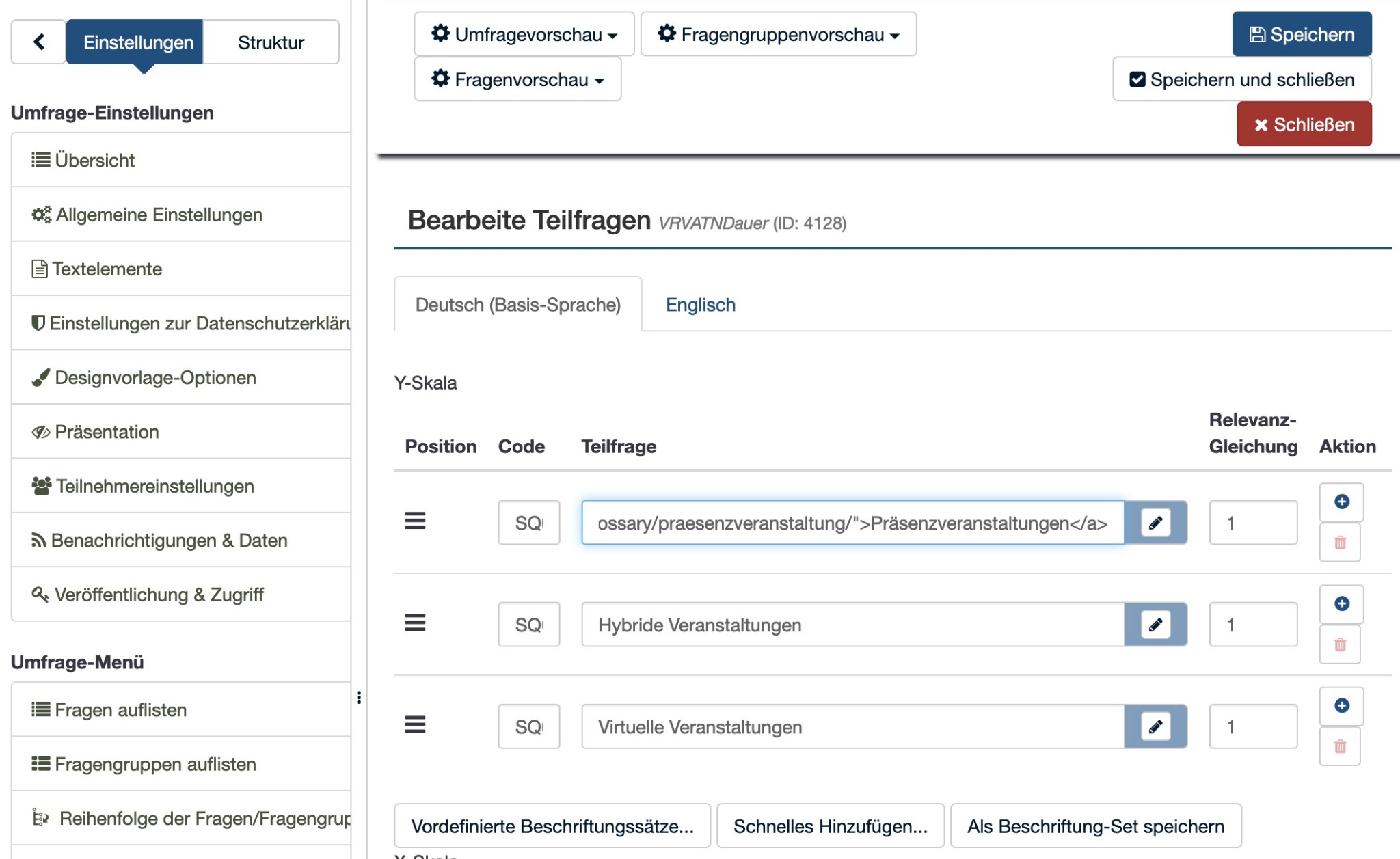 ich hab sowohl bei Google gesucht, als auch in dem Forum, aber bisher scheint das folgende Problem noch nicht aufgetaucht zu sein. Wenn ich bei Matrixfragen Links hinterlege, so speichert Limesurvey die Änderungen nicht mehr. Hier ein paar Screenshots:
