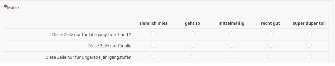 Die Teilfragen der Matrix bekommen eine Bedingung verpasst.