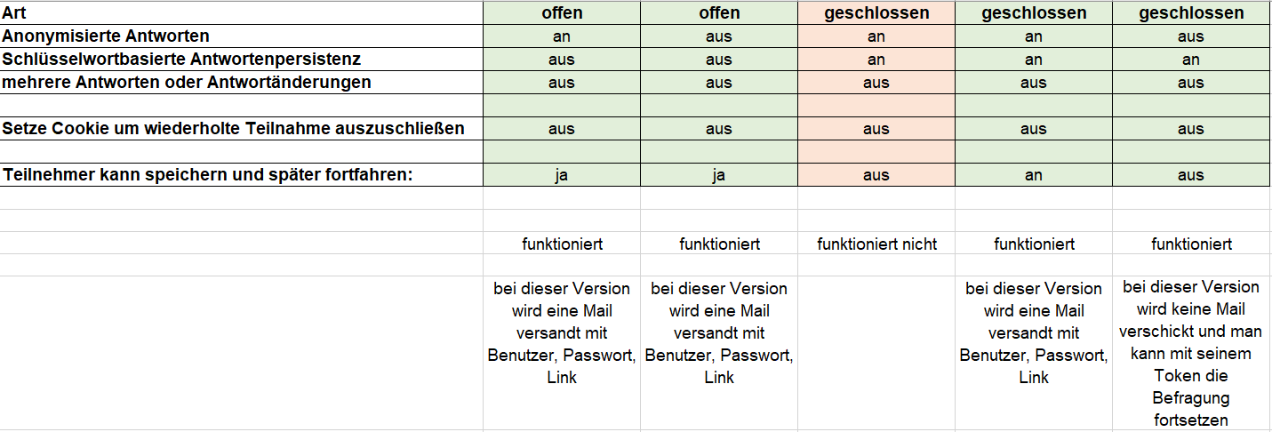 habe bisher zumeist geschlossene Umfragen erstellt, bei denen die TN die Möglichkeit haben, ihre Antworten zwischenzuspeichern und später fortzufahren. Damit das klappt, erhält der TN eine E-Mail, aus der der Benutzername, das Passwort und der Zugangslink (welcher Benutzername und Passwort enthält) zu entnehmen ist.