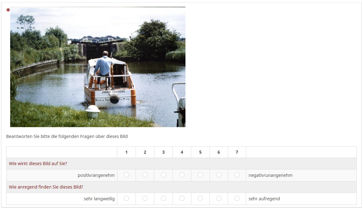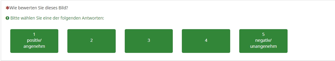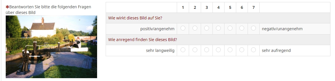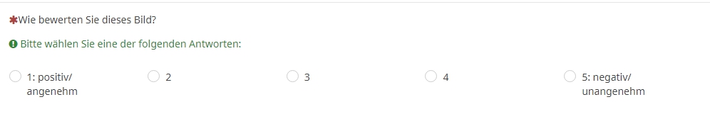 Bitte geben Sie auch hier auf einer 7-stufigen Skala an wie stark Sie Ihr Arousal nach der Präsentation jedes einzelnen Bildes einschätzen (7 entspricht dabei "ganz stark" und 1 "ganz schwach").