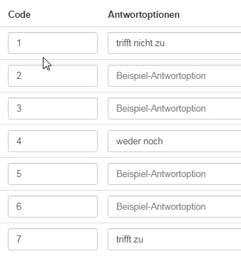Da "Beispiel-Antwort" nur ein Platzhalter ist, ist die Antwort leer und wird nicht angezeigt. Deine Matrix hat also nur drei Spalten.