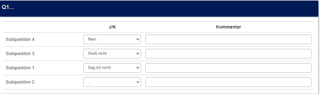 Zum Beispiel: Matrix(Texte) mit Drop-Down