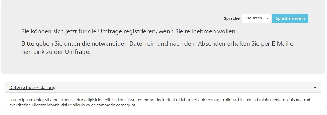 <div class="panel-group lang-de" id="accordion"> <div class="panel panel-default"> <div class="panel-heading"> <h4 data-toggle="collapse" data-parent="#accordion" href="#collapse1" class="panel-title expand"> <div class="right-arrow pull-right">+</div> <a href="#">Datenschutzerklärung</a> </h4> </div> <div id="collapse1" class="panel-collapse collapse"> <div class="panel-body">Lorem ipsum dolor sit amet, consectetur adipisicing elit, sed do eiusmod tempor incididunt ut labore et dolore magna aliqua. Ut enim ad minim veniam, quis nostrud exercitation ullamco laboris nisi ut aliquip ex ea commodo consequat.</div> </div> </div> </div>