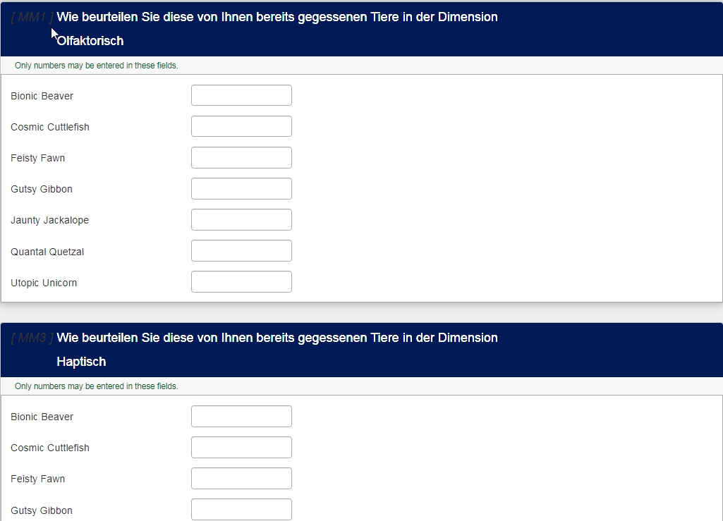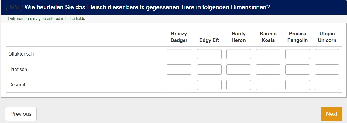 Und das ginge, also man bekommt den Text hinein.Gibt es eine Möglichkeit, dass die Befragten die Spaltenüberschriften selber ausfüllen?