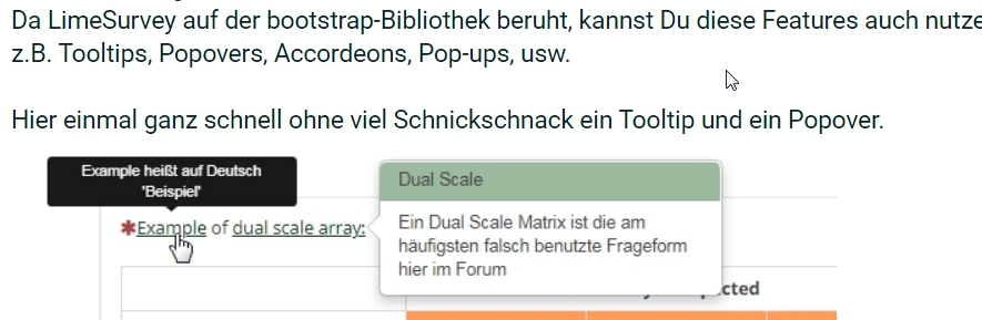 Und dann schlage ich zur Erläuterung im Fall der Fälle Tooltips oder Popovers vor