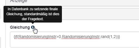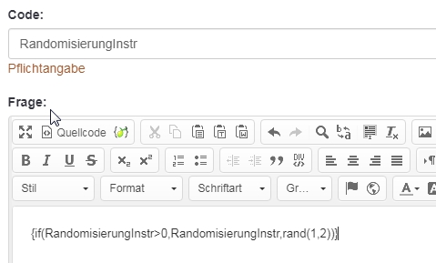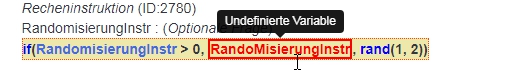 Bei Dir ist es so, dass Du einen Fragentext einfügst, der im Grunde nichts bewirkt {RandomisierungInstr} ist ja zu diesem Zeitpunkt noch nicht definiert), und diesen dann mit dem Eintrag in "Gleichung" wieder überschreibst.