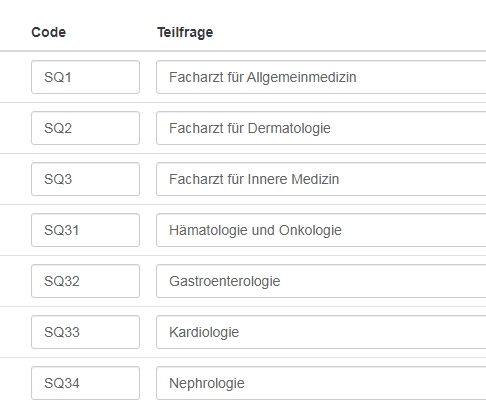 <script type="text/javascript" charset="utf-8"> // A function to handle "child" checkboxes function dependantCheckboxes(qID, primaryCodes, secondaryCodes) { // Identify the elements annd assign classes/attributes var thisQuestion = $('#question'+qID); thisQuestion.addClass('with-dependants'); $.each(primaryCodes, function(i, val) { var thisItem = $('li[id$="X'+qID+val+'"]'); $(thisItem).addClass('level-1 parent-item').attr('data-code', val).attr('data-level', '1'); }); $.each(secondaryCodes, function(i, val) { var thisItem = $('li[id$="X'+qID+val+'"]'); var thisParent1 = $(thisItem).prevAll('li[data-level="1"]:eq(0)'); $(thisItem).addClass('level-2 parent-item child-item').attr('data-code', val).attr('data-level', '2').attr('data-parent-1', $(thisParent1).attr('data-code')); }); // A function to handle the states of child items function handleChildren(el) { var thisitem = $(el).closest('li'); var thisCode = $(thisitem).attr('data-code'); var thisLevel = $(thisitem).attr('data-level'); var thisChildren = $('li[data-level="'+(Number(thisLevel)+1)+'"][data-parent-'+thisLevel+'="'+thisCode+'"]', thisQuestion); // Hide/show the secondary answers accordingly if (!$(el).is(':checked')) { $(thisChildren).fadeOut(300, function(e) { $('input:checkbox', thisChildren).prop('checked', false).trigger('change'); }); } else { $(thisChildren).fadeIn(300); } } // Initial states of the secondary answers $('.parent-item input:checkbox', thisQuestion).each(function(i) { handleChildren($(this)); }); // A listener on the primary answer to show or hide secondary answers $('.parent-item input:checkbox', thisQuestion).on('change', function(e) { handleChildren($(this)); }); } $(document).on('ready pjax:scriptcomplete',function(){ dependantCheckboxes( {QID}, ['SQ1', 'SQ2', 'SQ3'], // First-level sub-question codes ['SQ31','SQ32','SQ33', 'SQ34'] // Second-level sub-question codes ); }); </script>