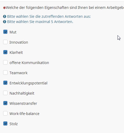 Konkreter: Ich würde gern um die 15 Begriffe einmal in einer Mehrfachauswahl abfragen und dann soll die Auswahl (von 5) im Anschluss in einer Reihenfolge-Frage geranked werden. Ist so etwas mittels Bedingungen machbar?
