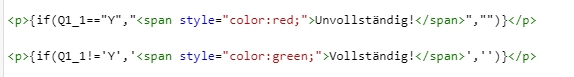 {if( 1==1,'<span style="color:green">Fertig!</span>','<span style="color:red">Unvollständig!</span>')}