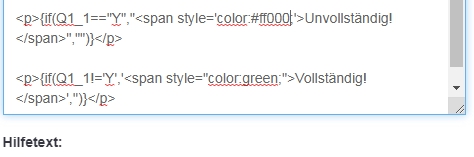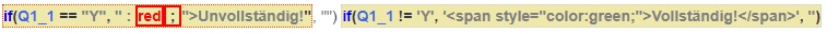 {if( 1==2,"<span style="color:#008000;">Fertig!</span>","<span style="color:#FF0000;">Unvollständig!</span>")}