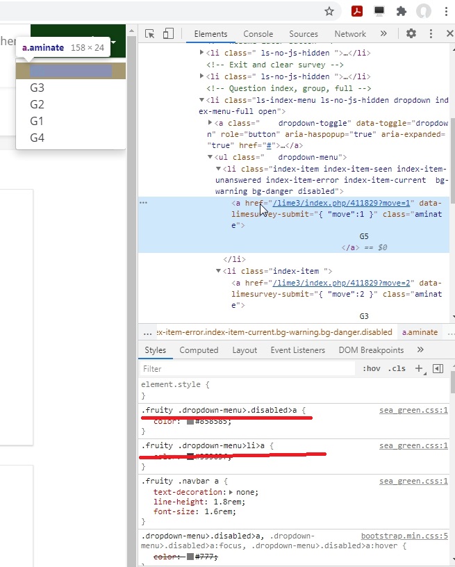Mal davon abgesehen, dass ich kein Posting fand, wo ich den Hintergrund von "Gruppe unbeantwortet" und "Gruppe mit Fehler" einstellen kann, würde mich mal interessieren, wie ich herausfinden kann, welche Modifier ich überhaupt ansprechen kann und wie. In der Bootstrap-Basisklasse finde ich z.B. kein "> li > a:hover" - muss man dafür Webprogrammierer sein (ich bin halt keiner) und handelt es sich dabei um Allgemeinwissen?