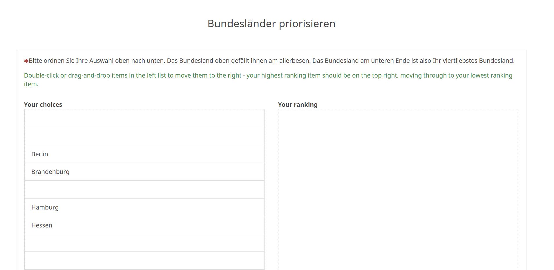 In Frage 2 sollen die 4 ausgewählten Items gerankt werden.