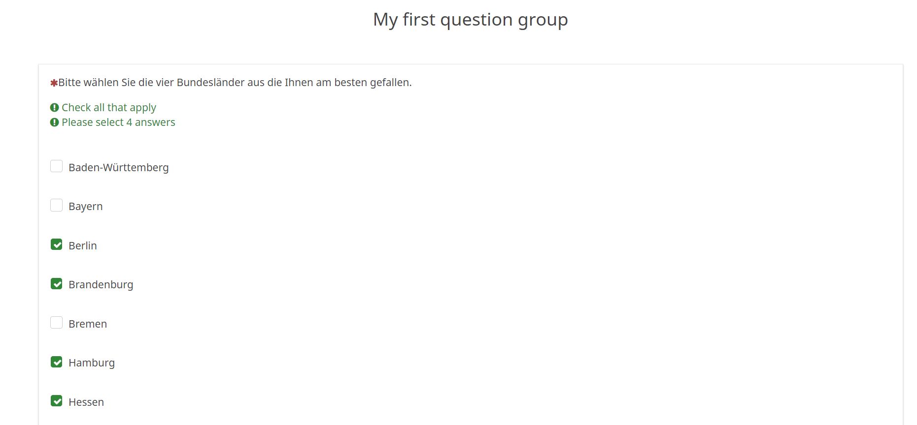 In Frage 1 sollen 4 Items aus ca. 20 ausgewählt werden.