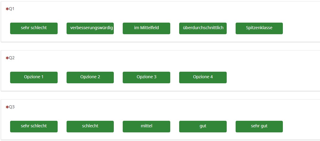 Falls ein Teilnehmer scrollen muss, ist dies schon ein Grund, das Design zu überdenken. Ich rede jetzt nicht von einer Beantwortung auf einem mobilen Device, wo dies schon schlimm genug ist..
