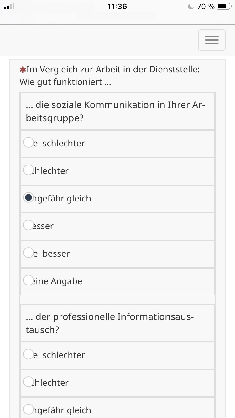 Bei Beantwortung der Umfrage übers Smartphone ergibt sich jedoch folgendes Problem: