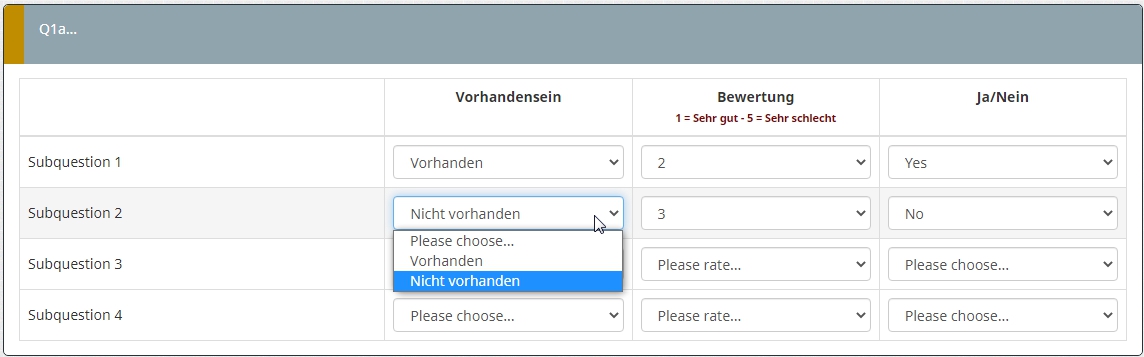 Was ich als einfache Lösung vorschlagen kann, ist eine Matrix(Texte) mit Dropdown-Layout, also so etwas