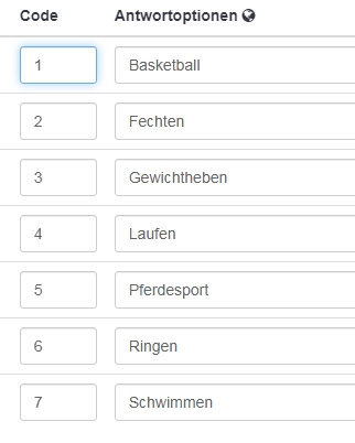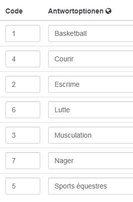 Nein, ich meine Fragen. Die eine ist in der deutschen Ordnung sortiert, die andere in der französischen.Wenn ich dich richtige verstehe, erstelle ich zunächst eine Frage (Fragentyp Liste Klappbox) in deutsch sowie eine in französisch. Oder meinst Du Beschriftungssets?