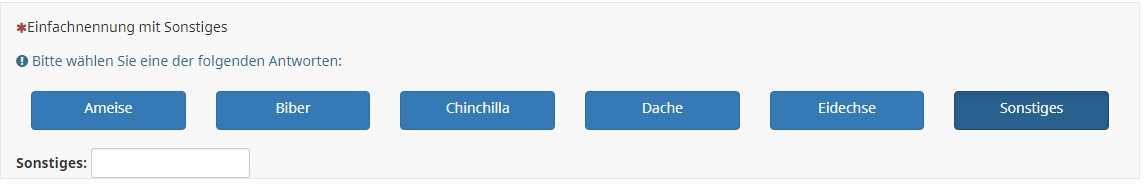 Das ist aber doch das Standardverhalten, wenn Du "Sonstiges" auf AN setzt.Ich hätte aber gerne nur die letzte Antwortmöglichkeit ("Andere") mit einem Freitextfeld versehen.