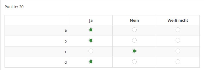 Hier ist ja wohl "a", "b" und "d" richtig, "c" falsch.