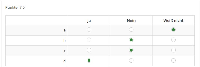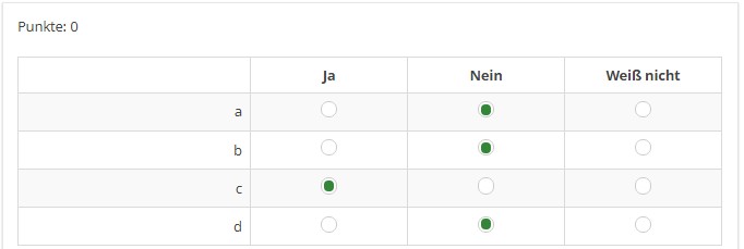 Dann wäre doch eine Frage vom Typ "Matrix" die richtige. Oder?