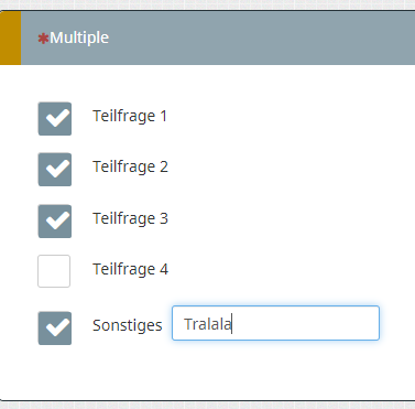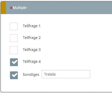 Wenn sie aber ausgewählt wurde, darf die Anzahl der ausgewählten Items (exklusive "Sonstiges") nur 1 sein.