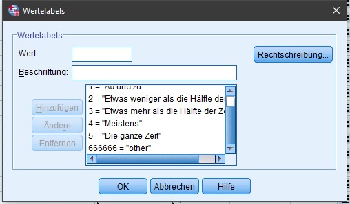 Für jede einzelne Frage wird hier ein Statement angelegt.VALUE LABELS V29
