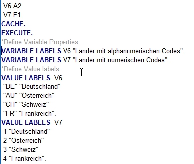 Besonders lang wird es auch bei Mehrfachfragen; da wird für jede Teilfrage ein Statement angelegt.VALUE LABELS V29 to V37 V39 to V45