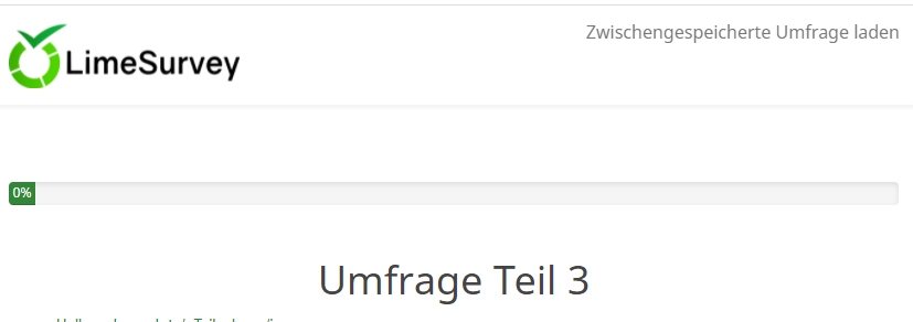 Auf der ersten Seite wird gefragt, ob man eine zwischengespeicherte Umfrage weiterführen will