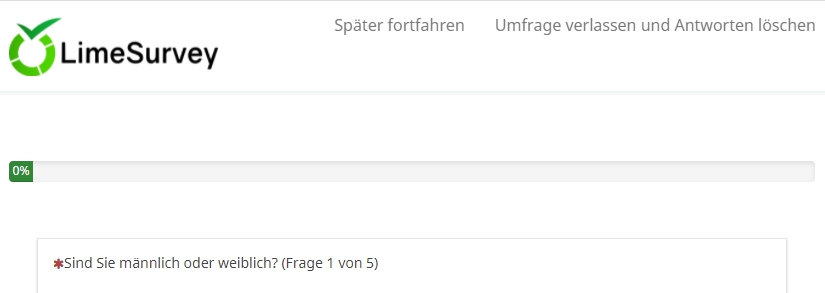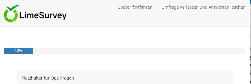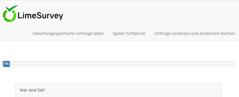 Auf der nächsten Seite dann aber nicht mehr (man wollte ja keine gespeicherte Umfrage aufrufen). Hier gibt es nur die Möglichkeit, zu speichern um später fortzufahren.