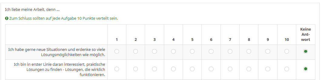 Bei den 10-Punkt-Fragen hast Du dies ja bereits getan; obwohl keine Antwortoptionen eingetragen werden können (das ist ja der Sinn dieses "Faulpelz"-Fragentyps), wird intern 1,2,3,4... gespeichert.
