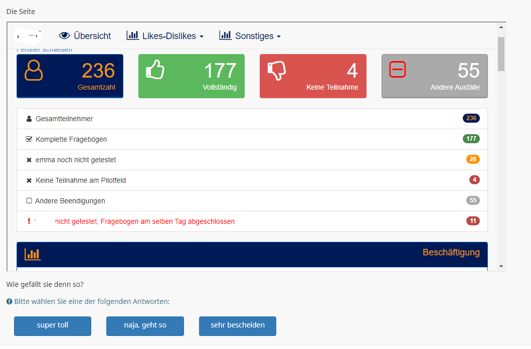 Dies alles funktioniert natürlich nur in einer aktivierten Umfrage.