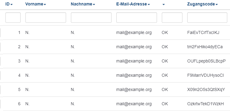 2. Gibt es eine Möglichkeit an eine Liste von E-Mails zufällig generierte Zugangsschlüssel zu senden ohne sie als Teilnehmer zu haben?
