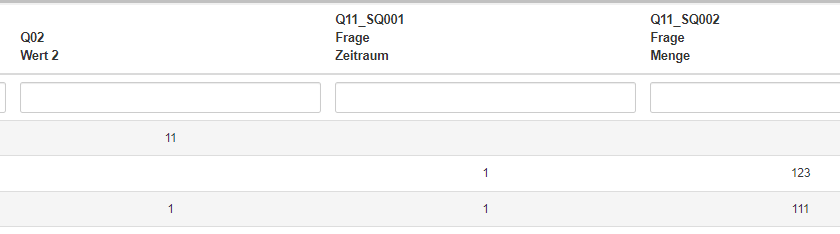 - Du schaust Dir die Antwort-Tabelle in LimeSurvey an.