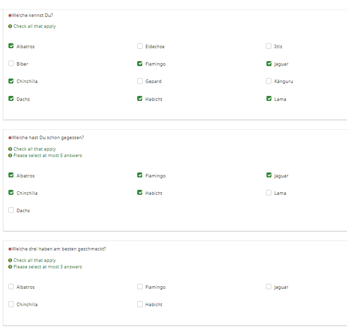 Auch ist der Ort der Installation wichtig. Bei den bei LimeSurvey GmbH gehosteten Versionen kannst Du z.B. keine plugins installieren (soll heißen, sie lassen es sich bezahlen). Und bei so etwas wie Uni-Installationen sind die Rechte der Nutzer meist noch weiter beschränkt, so dass oft nicht einmal der Einsatz von javascript möglich ist.