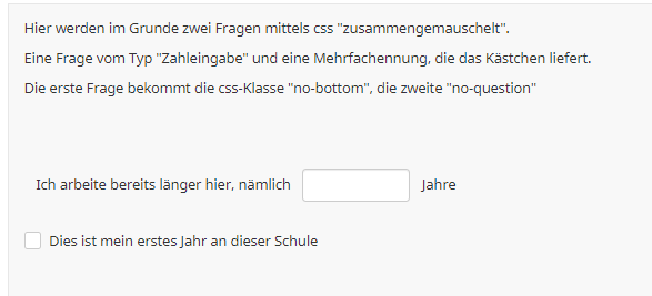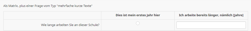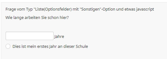 <script type="text/javascript" data-author="Tony Partner"> $(document).on('ready pjax:scriptcomplete',function(){ var thisQuestion = $('#question{QID}'); var answersList = $('.ls-answers.answers-list > ul:eq(0)', thisQuestion) // Move the last row $(answersList).prepend($('li:last', answersList)); // Move the label $('li:first', answersList).append($('li:first .radio-item', answersList)); // Hide the radio $('li:first .radio-item', answersList).removeClass('radio-item'); $('li:first input:radio', answersList).css({ 'position': 'absolute', 'left': '-9999em' }); }); </script>