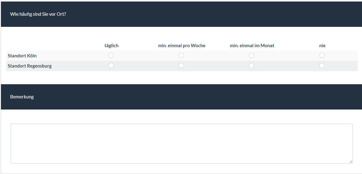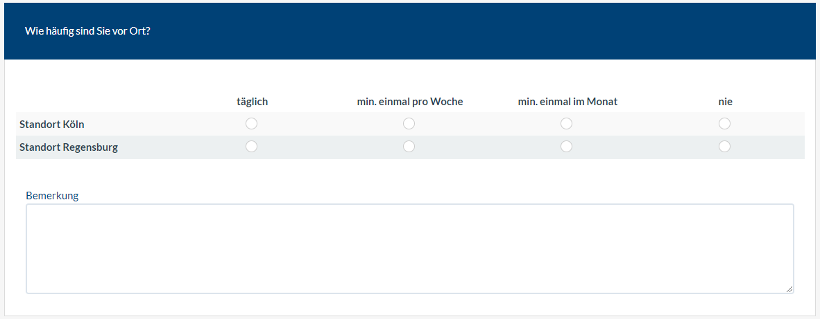 Wieso blau?Optimal wäre es, wenn ich den Frageteil "Bemerkung" einfach weiß (anstatt blau) hinterlegen könnte.
